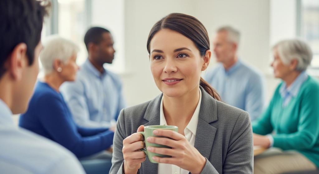 - Peer-led, not therapy-led so conversations feel real, not clinical